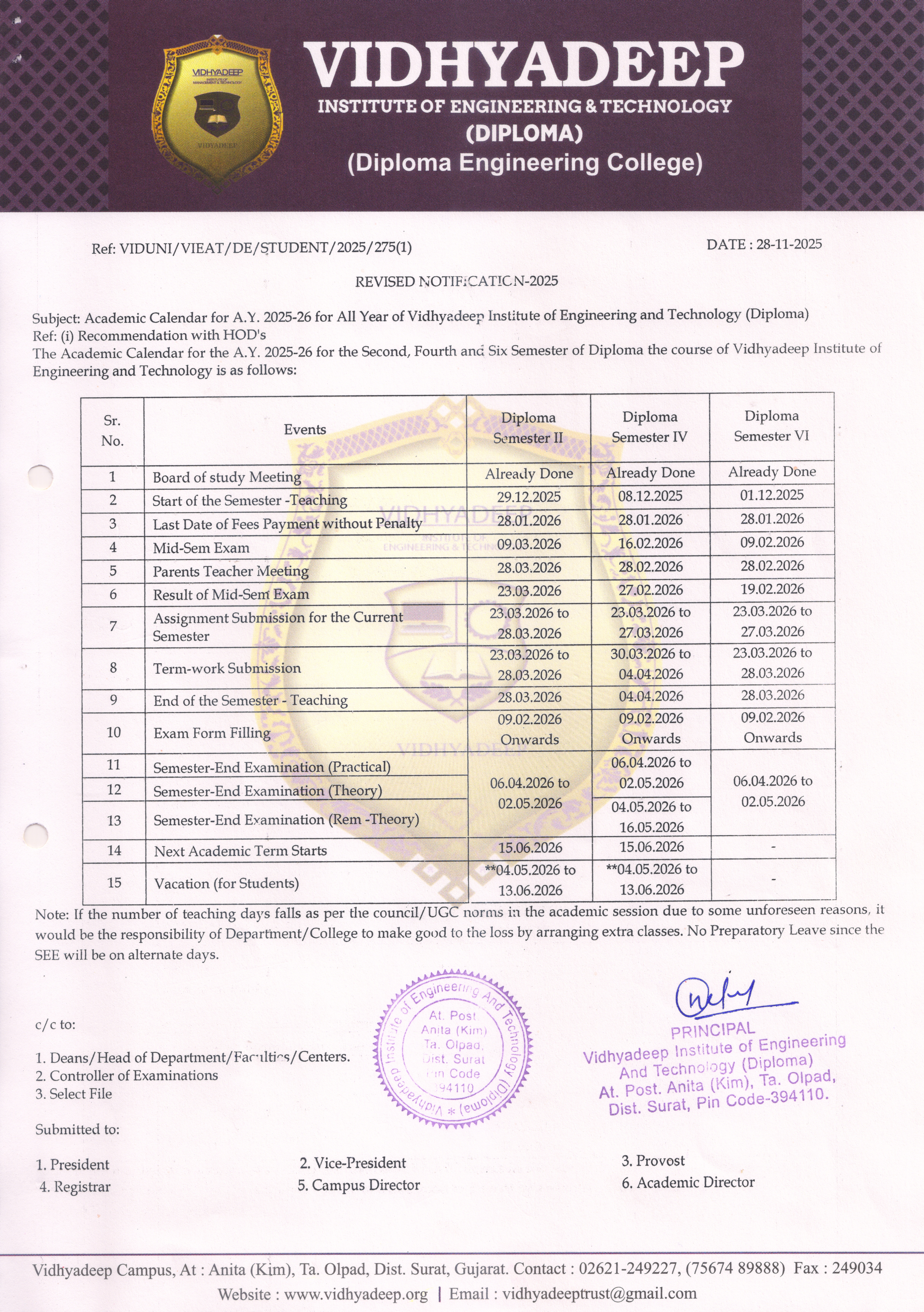 The Diploma IT Engineering Department of Vidhyadeep Institute of Engineering & Technology (VIEAT).